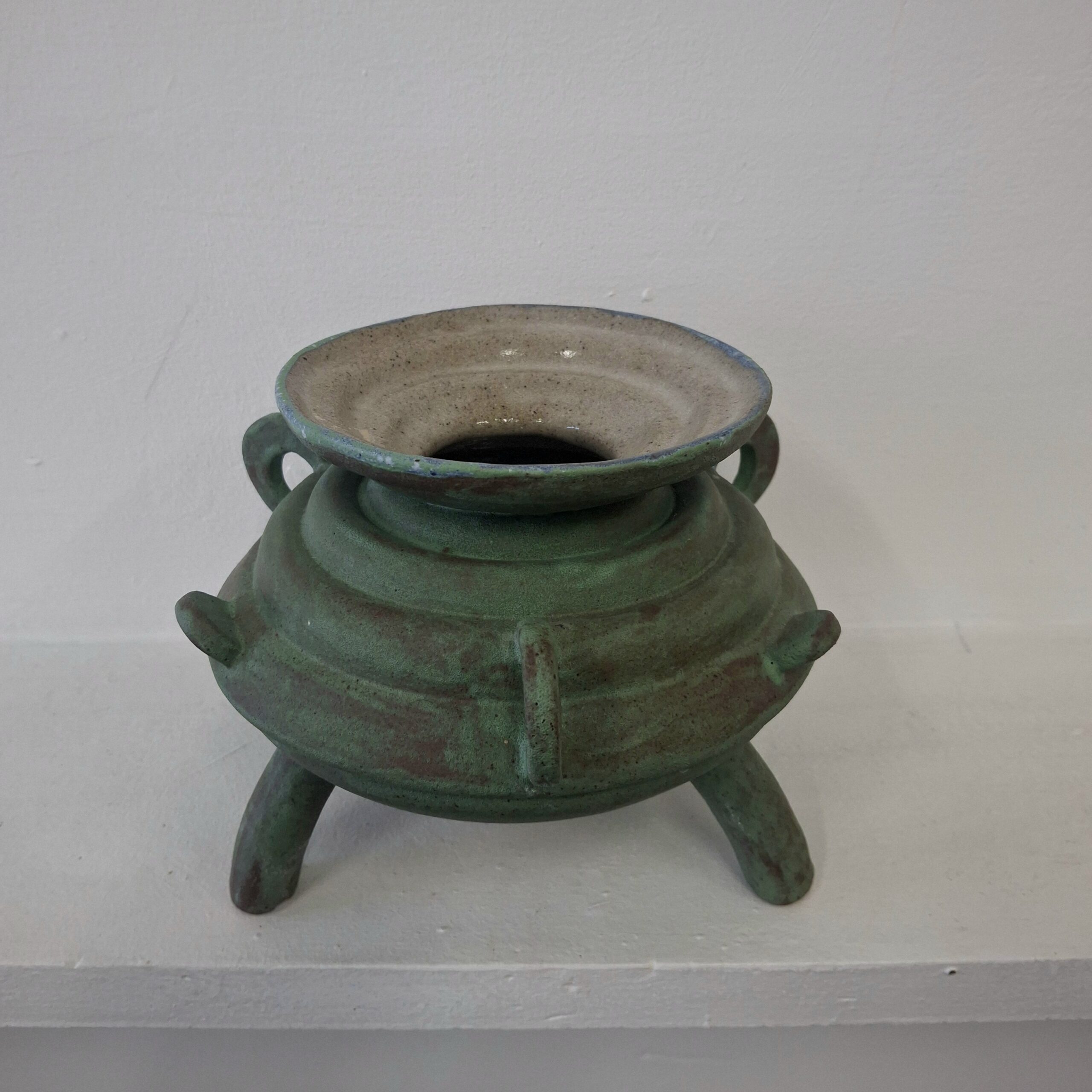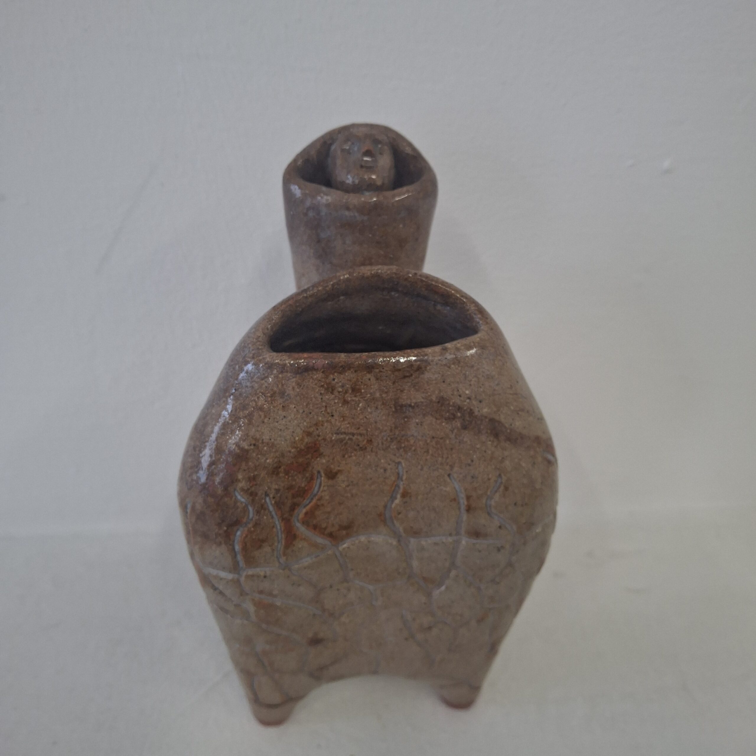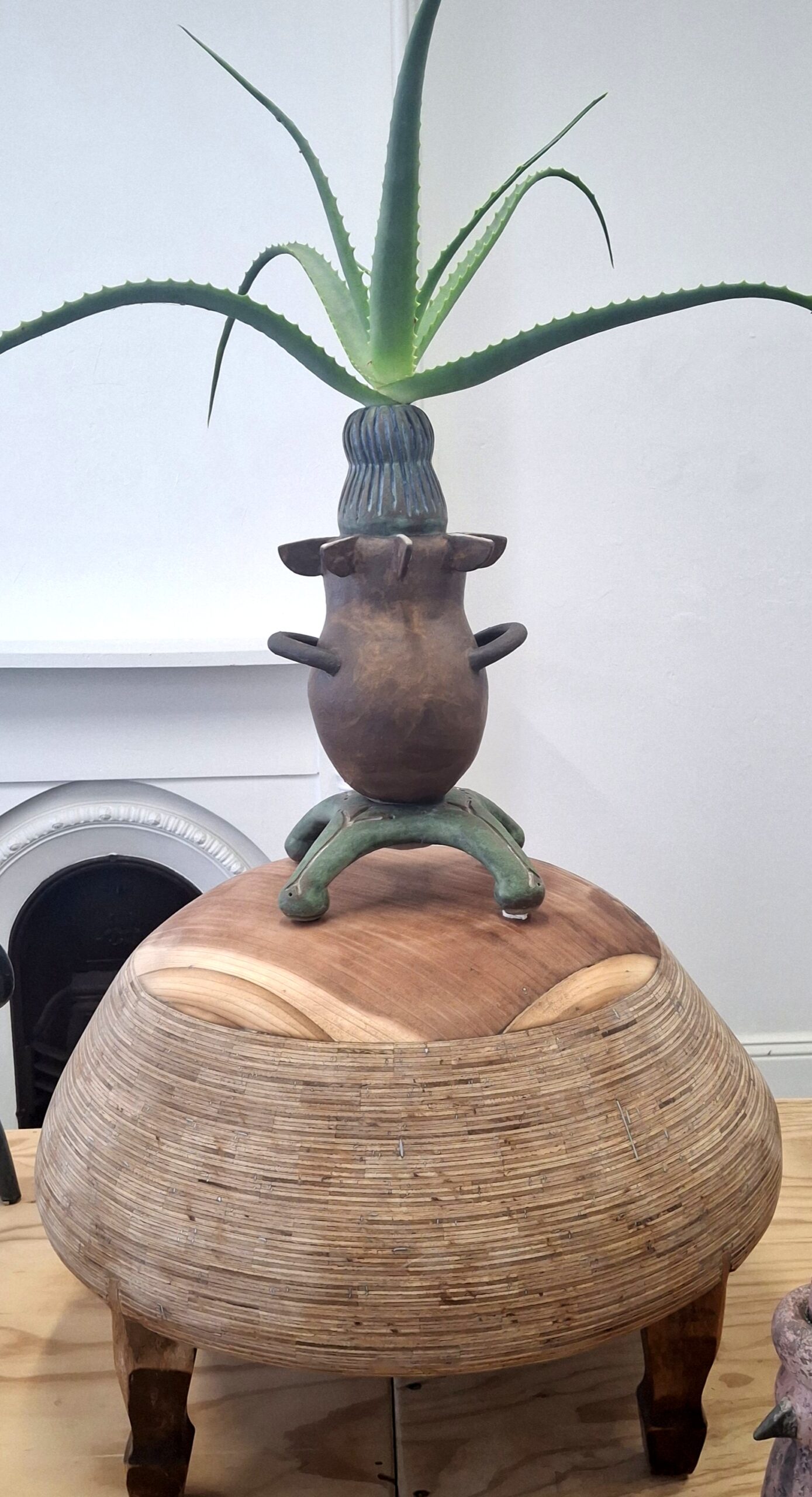 glazed stoneware, wood, plant