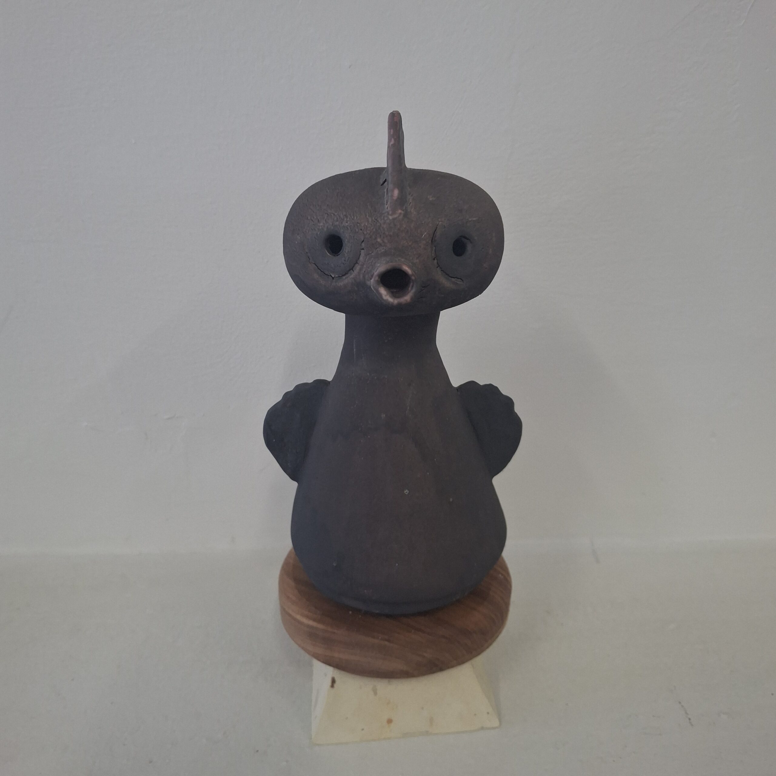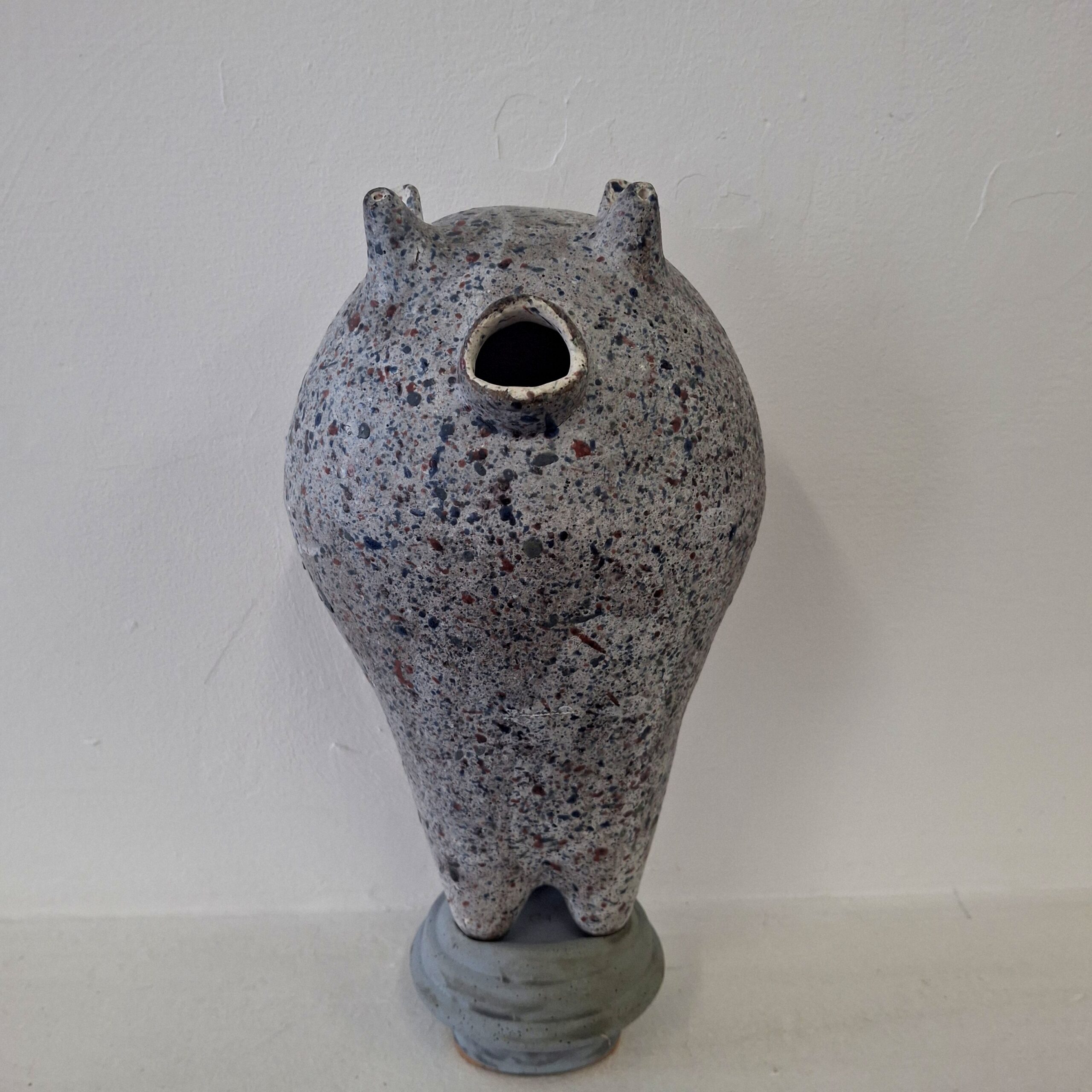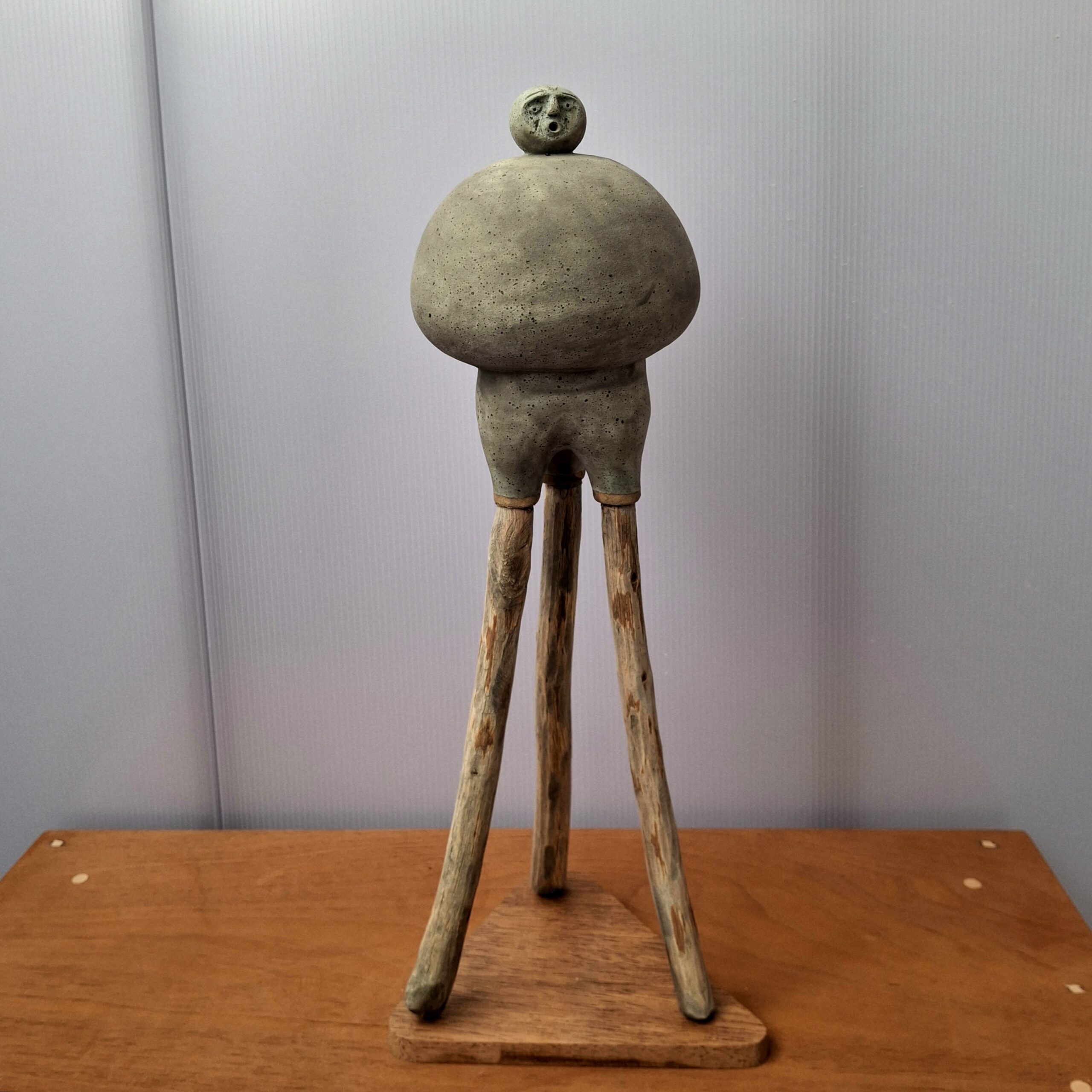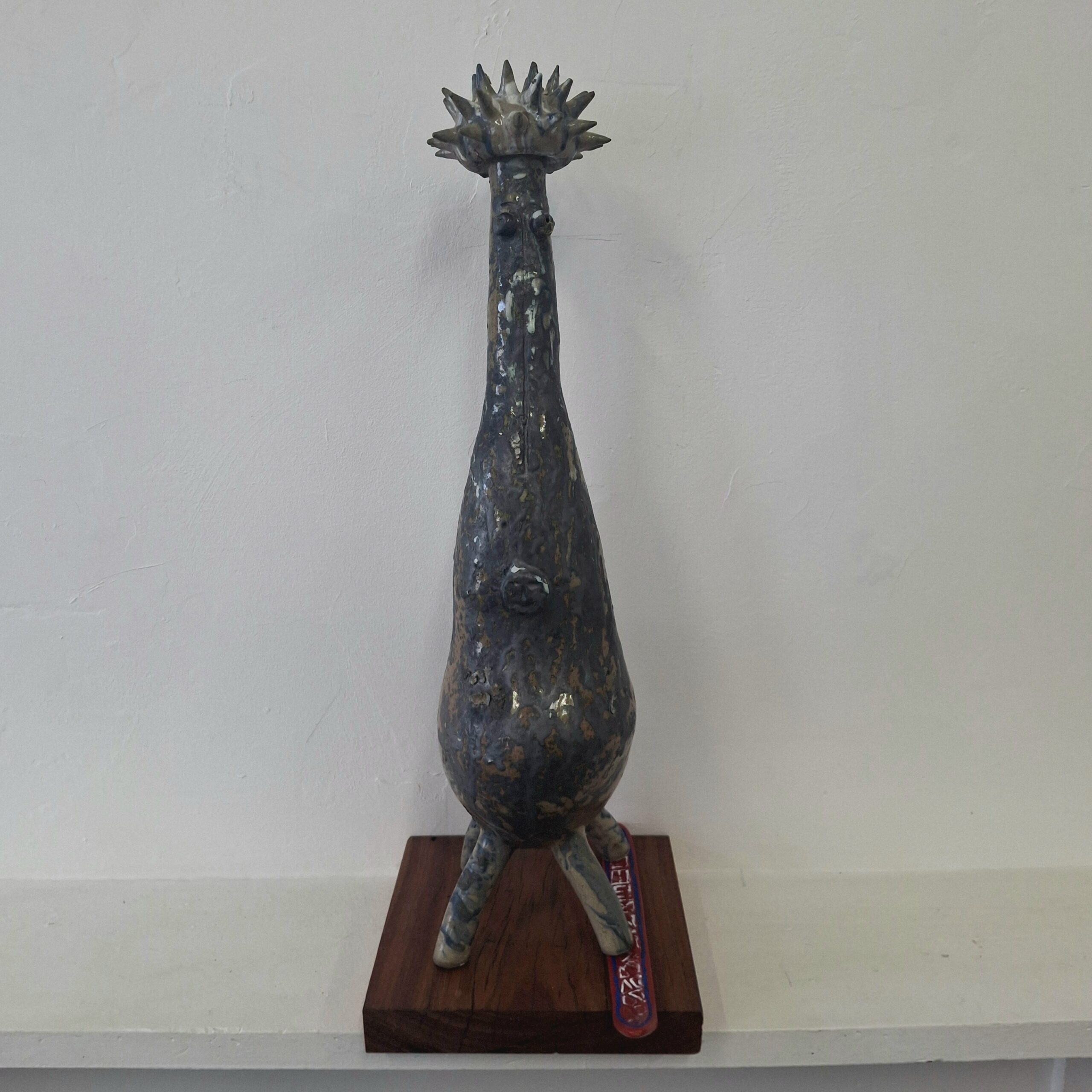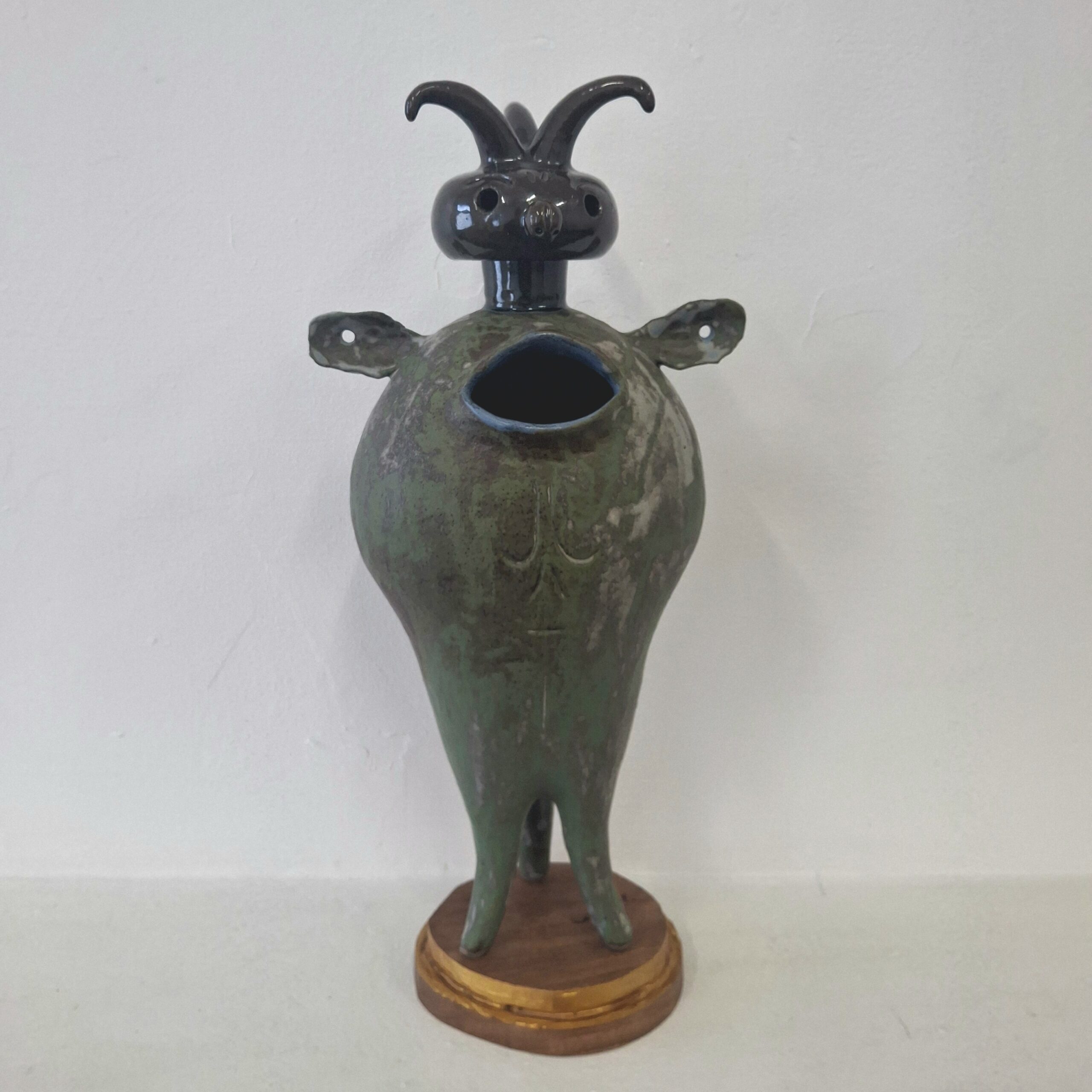 glazed stoneware, wood base
