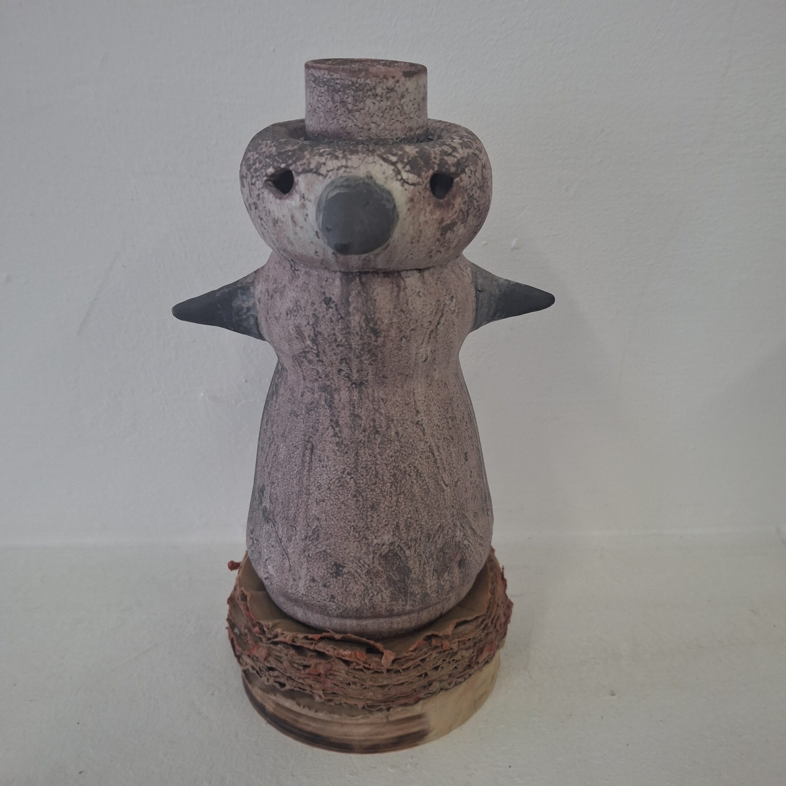 glazed stoneware, cardboard and wood